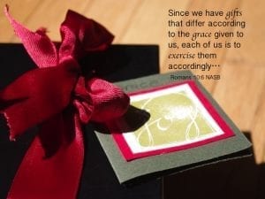Use Your Gift by Ginger Harrington | 0 comments Gift-wrapped box demonstrates Romans 10:6 Submit a Comment Cancel replyYour email address will not be published. Required fields are marked *Comment * Name * Email * Website Δ This site uses Akismet to reduce spam. Learn how your comment data is processed.
