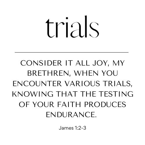 In other seasons of life, hardships and challenges have required me to press through discomfort, trusting God for answers and help I couldn’t see at the time. James reminds us that trials come in many varieties, but there can be joy when we realize God is at work.