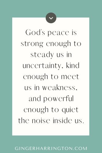 God’s peace is strong enough to steady us in uncertainty, kind enough to meet us in weakness, and powerful enough to quiet the noise inside us.