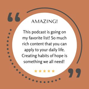 Thank you! Habits of Hope has been such an encouraging podcast to listen to while going through a challenging year.