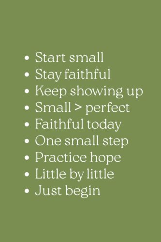 Choose a habit that feels simple and doable and focus on showing up consistently rather than doing it perfectly. You don’t need to change everything at once. Faithfulness grows when you return to the same small practice over time.